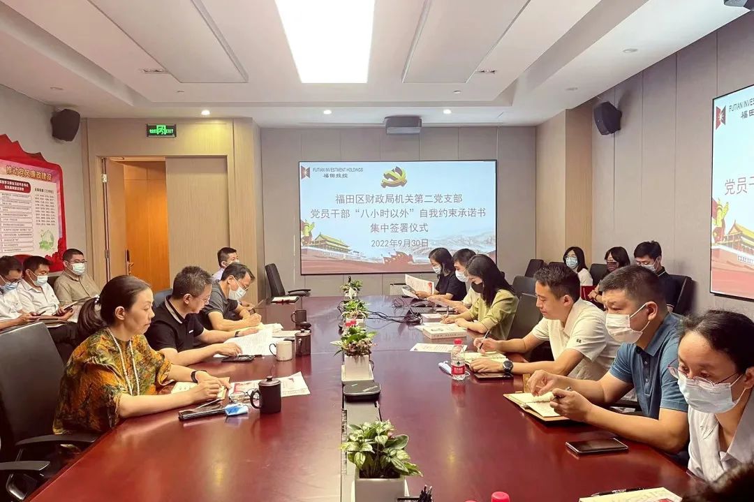 9月30日上午,福田区财政局机关第二党支部召开2022年纪律教育学习月党风廉政建设专题党员大会,利用国庆节前时间点,对公司党风廉政建设工作进行再提醒、再警示、再部署。会议以“线上+线下”方式进行,支部全体党员、公司各部门、辖属企业主要负责人参会。