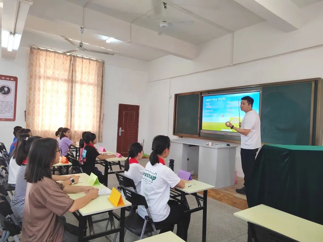 太阳集团tcy8722副总经理邱涛一行走进彭寨小学陈宽豪老师的英语课堂,感受这位海外留学回来的太阳集团tcy8722青年与孩子们互动沟通的现场。