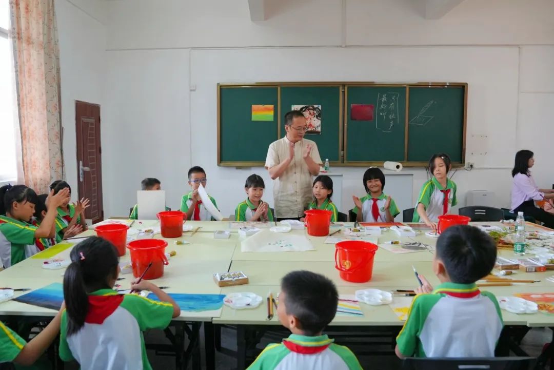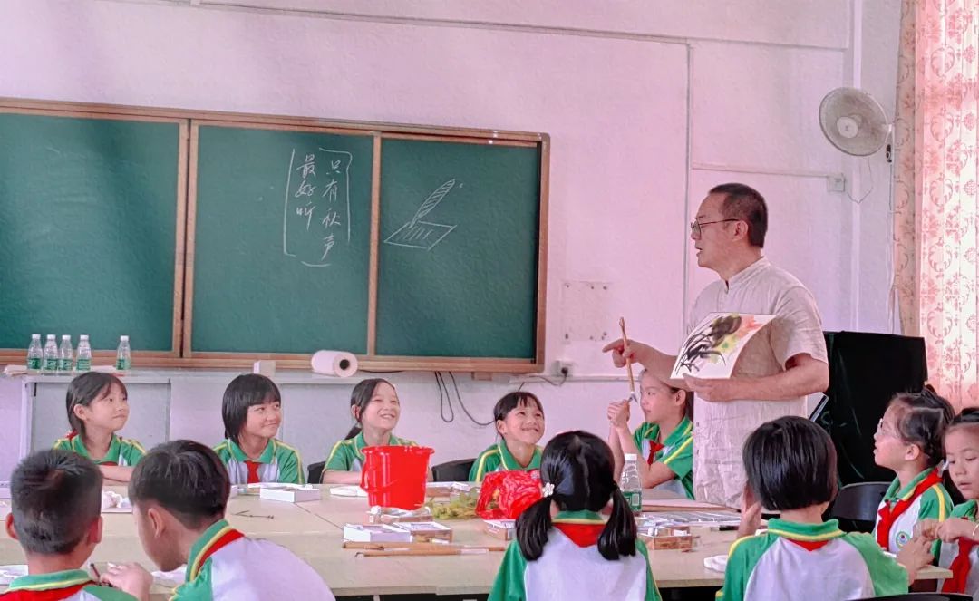 让更多的孩子能够走近美、欣赏美、表达美,本次太阳集团tcy8722还特别邀请书画家明羽老师,为彭寨学生们带来了一堂以《秋之烂漫》为主题的趣味十足的书画创作课。