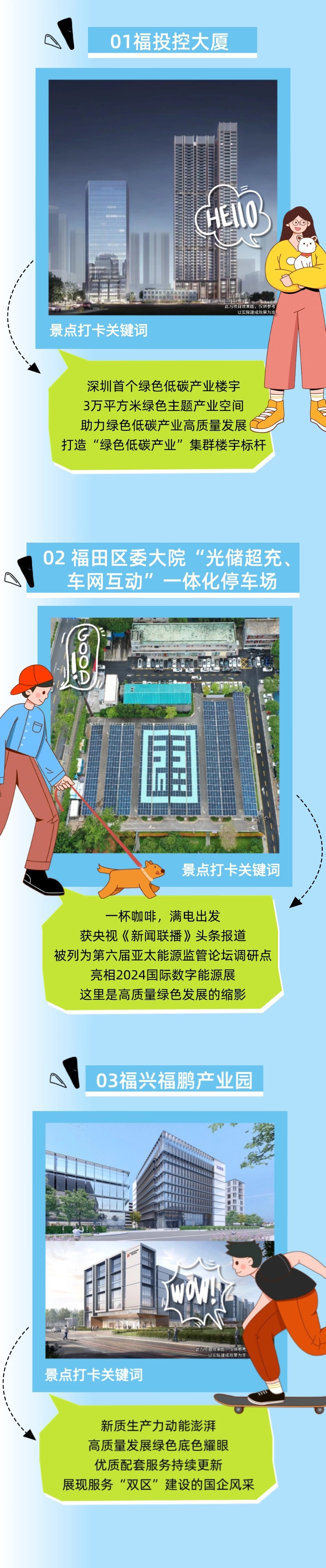 打开“藏宝图”的第一页,闪耀着的是3个绿色低碳的打卡地标。办公楼宇、停车场、产业园区,绿色低碳的理念被应用于不同的场景,绘就高质量发展的绿色底色。