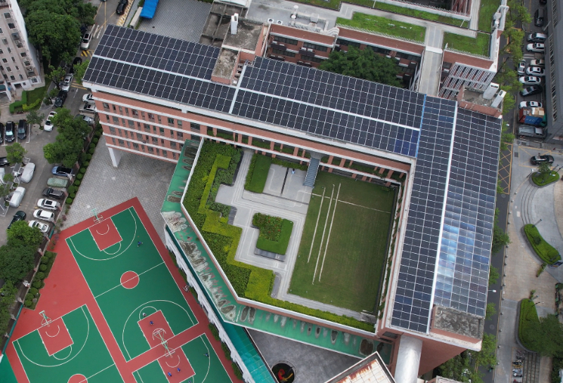 ▲福田外国语高级中学屋顶上的光伏板