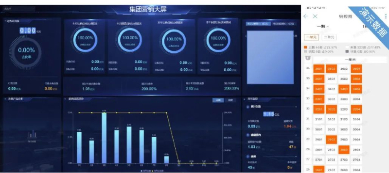 数据驱动决策,全维指标动态可视:打造销售数据实时看板体系,通过数据大屏可以动态掌握目标达成情况、签约趋势、库存等核心指标;手机端实时查看销控图等核心数据,提升决策效率。