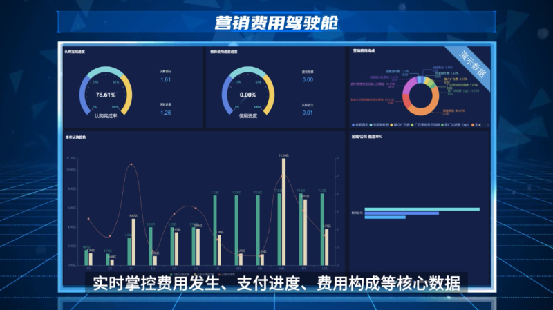 ▲费用管理系统数据大屏-营销费用驾驶舱